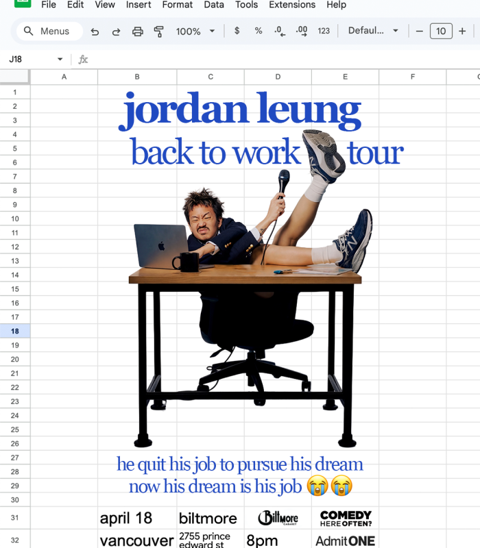 Join Jordan on April 18th for a night of comedy at Vancouver’s Biltmore Cabaret located at 2755 Prince Edward St!